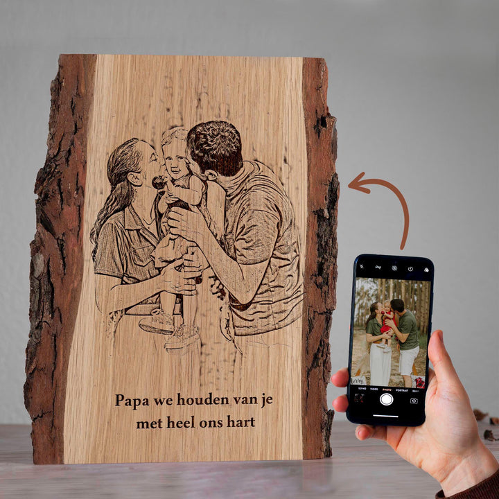 Gepersonaliseerde Pyrografie Kunst- Foto Gebrand op Hout voor Vaderdag