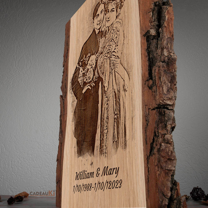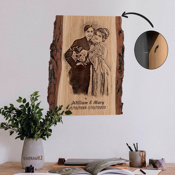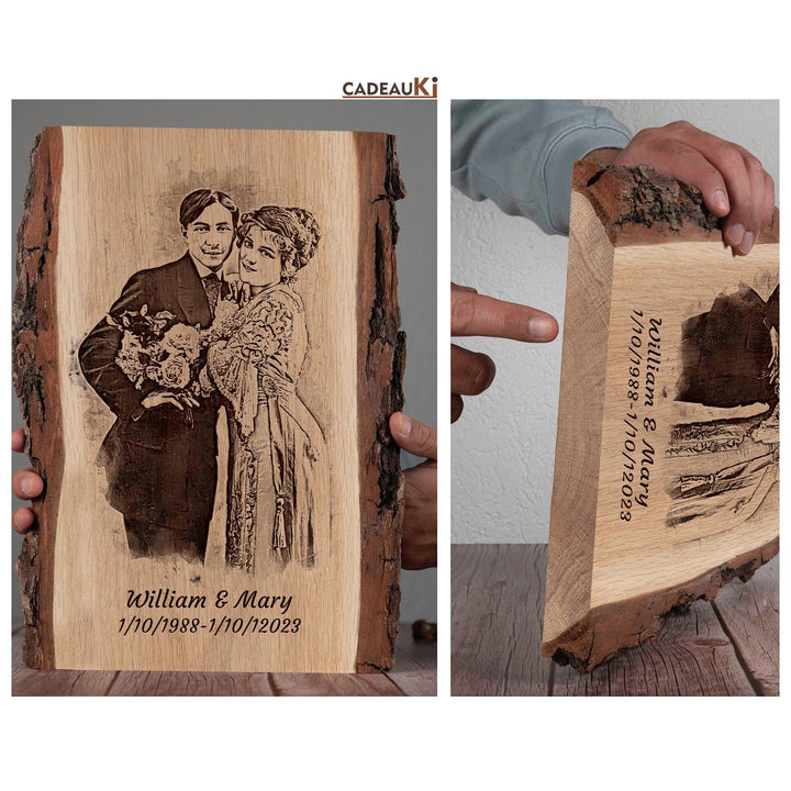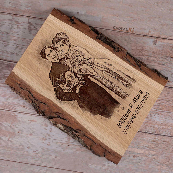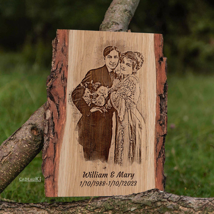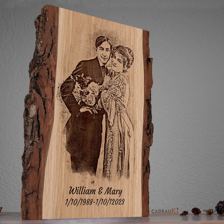 Op zoek naar een speciaal cadeau dat zowel uniek als persoonlijk is? Kijk dan niet verder! Ons gepersonaliseerde fotocadeau op hout met schors brengt jouw mooiste herinneringen tot leven met de kunst van pyrografie. Of het nu gaat om een viering van liefde, een huwelijksjubileum of een housewarming, deze houten kunstwerken zijn een hartverwarmend cadeau voor elke gelegenheid.