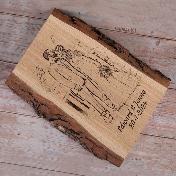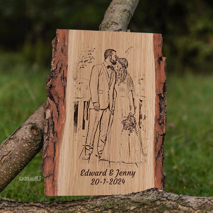 Verras je geliefde, vrienden of familie met dit unieke cadeau. Het is perfect voor je vader, je zus, je geliefde, of als een blijvend huwelijkscadeau. Ook voor speciale mijlpalen zoals een 25-jarig huwelijk, een houten huwelijk, of een 50-jarig jubileum biedt dit persoonlijke kunstwerk een onvergetelijke verrassing. Het voegt een warme, natuurlijke touch toe aan elke woonkamer, slaapkamer, of welke ruimte dan ook, en biedt een prachtige manier om een grappig moment, een romantische herinnering, of gewoon een mooie dag vast te leggen.