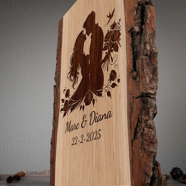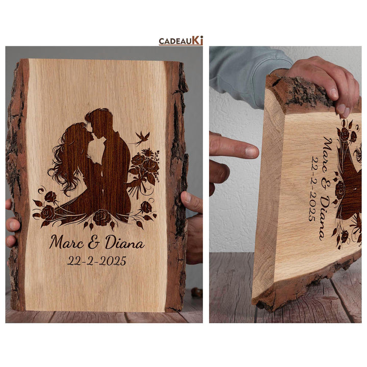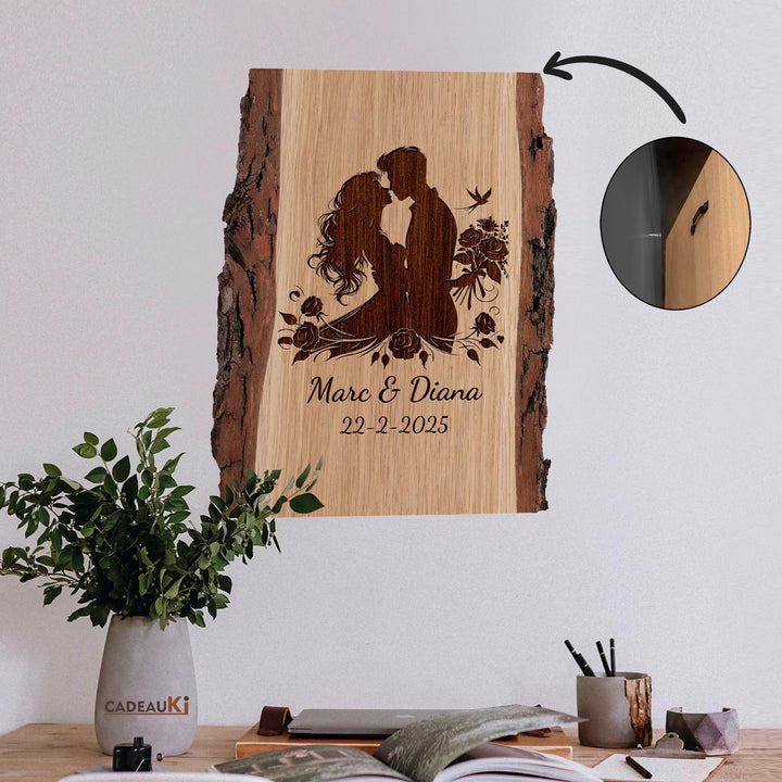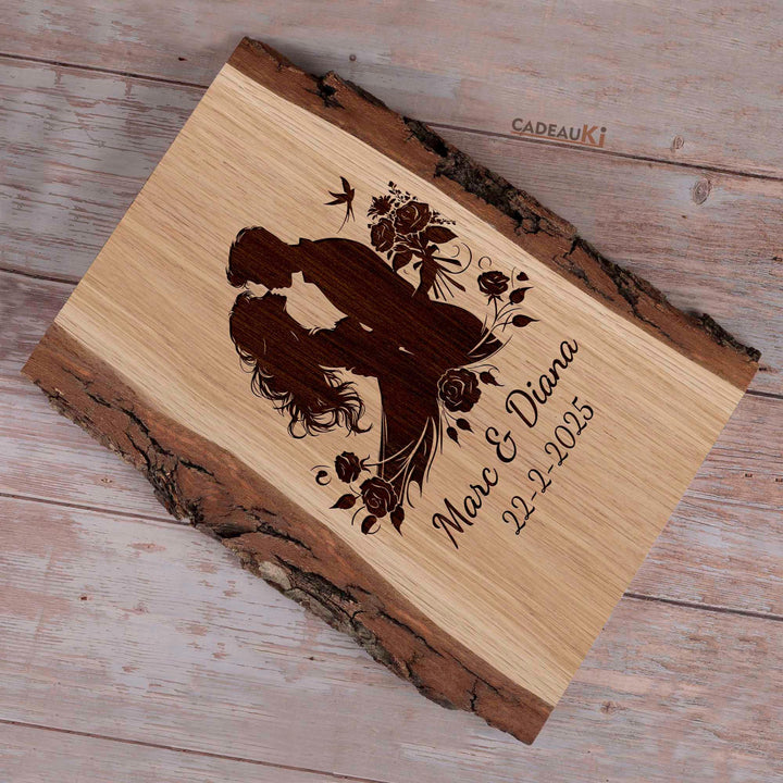Deze gepersonaliseerde houtgravure wordt speciaal voor jullie gemaakt met jullie namen en een belangrijke datum. Een prachtig idee als huwelijkscadeau, jubileum cadeau of Valentijn verrassing.