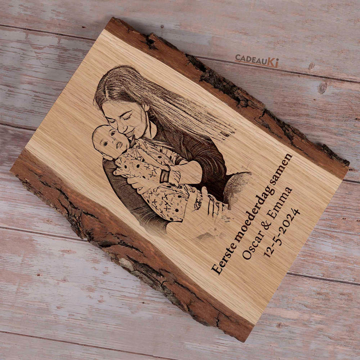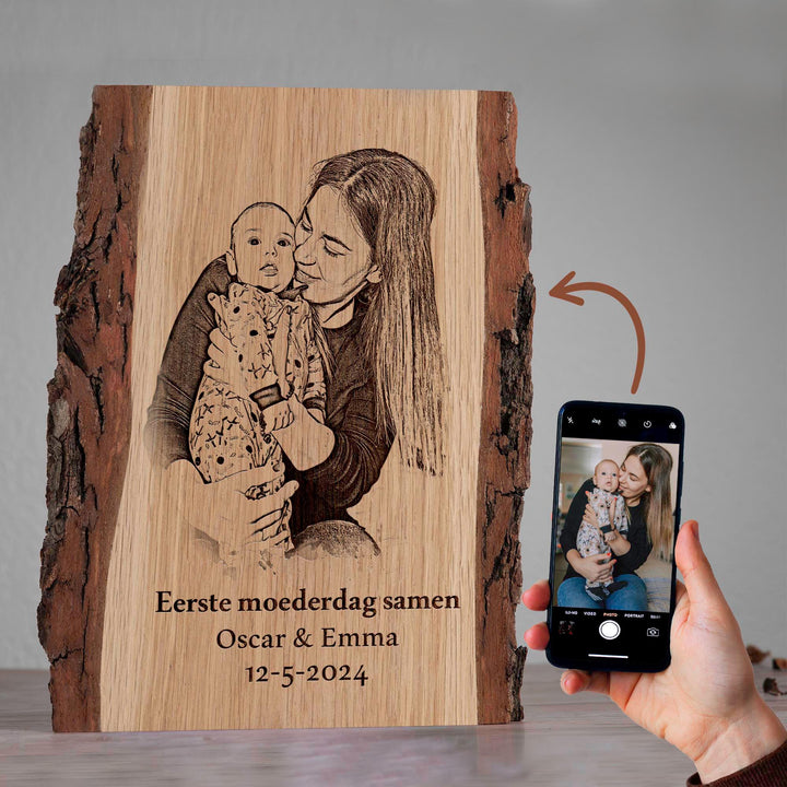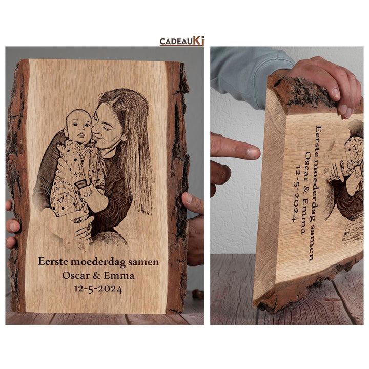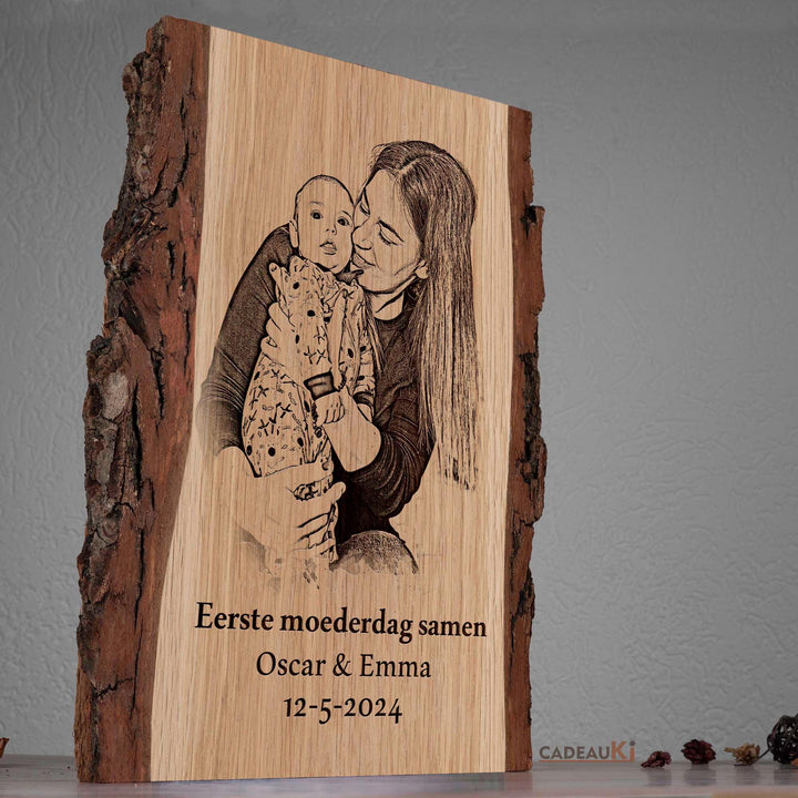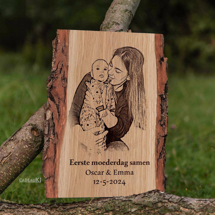 Op zoek naar het meest persoonlijke en hartverwarmende cadeau voor Moederdag? Maak van deze speciale gelegenheid een onvergetelijk moment met een getekend en gebrand persoonlijke foto op hout. Dit prachtige kunstwerk biedt de mogelijkheid om jouw houten stuk te personaliseren met een gravure van een speciale datum, namen en een lieve boodschap naar keuze. Het is daarmee niet alleen perfect voor Moederdag, maar ook voor vele andere gelegenheden, of het nu gaat om een cadeau voor haar of hem, een Kerstcadeau, Vaderdag, of een uniek huwelijkscadeau.